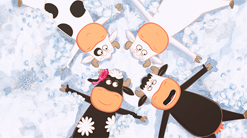 After their roadtrip to the sea, our four cows, Clarisse, Maggie, Aglaé and Rosine now walk towards the mountain. JB, the green-pasturage animator invited them to join them to discover the snowy peaks. But when they learn from the sheep that JB has disappeared after leaving looking for edelweiss, our four heroines decide to go looking for him and save him from the terrifying bélébélé.